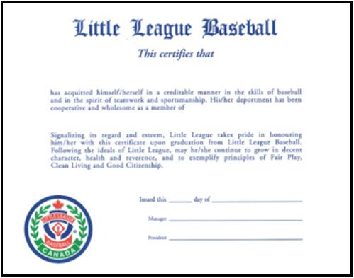All rewards are accompanied by a letter from the President of Little League® Baseball Canada thanking the individual for his or her service as a Little League® volunteer.